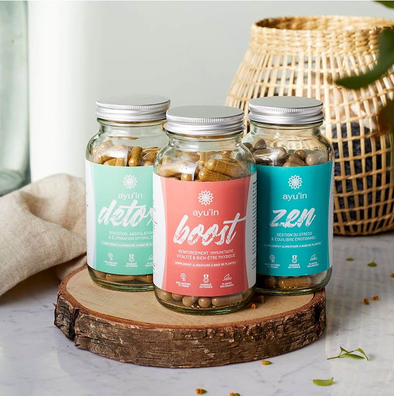 Étant entrepreneuse, je me suis dit que ces plantes qui avaient bien fonctionné pour moi pouvaient aussi aider les autres. C’est comme ça qu’Ayu’in est né… des cures ayurvédiques correspondant à mes valeurs : Bio certifiées par Ecocert, fabriquées en France, vegan, et éco-responsables.