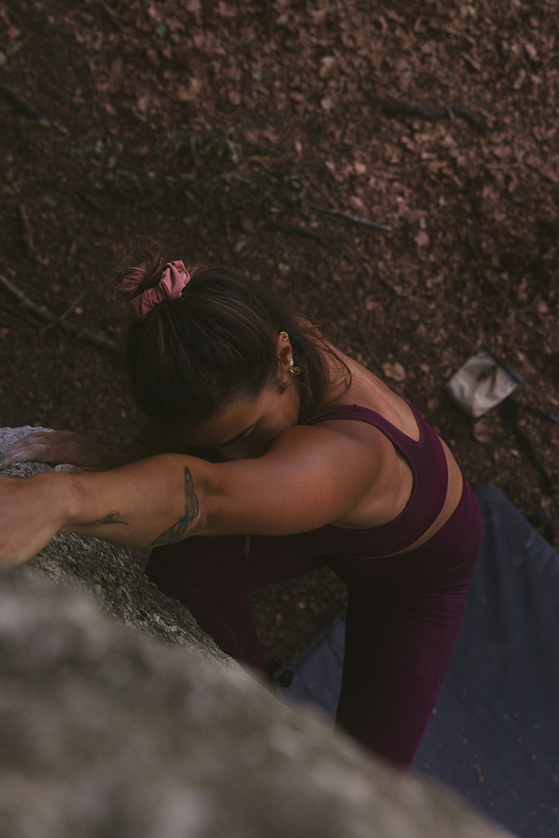 Je pratique tous les jours la mobilité et l’assouplissement de mon corps, pour moi c’est une base clefs pour me sentir légère ! J’ai un coach qui me fait de la préparation physique spécifique trois fois par semaine et en amont je vais trottiner, faire du vélo et surtout grimper en falaise ou en salle ! Pour le travail de respiration, j’essaye de garder ce moment le soir, dans mon lit avant de m’endormir, je compte les moutons à travers ma respiration !