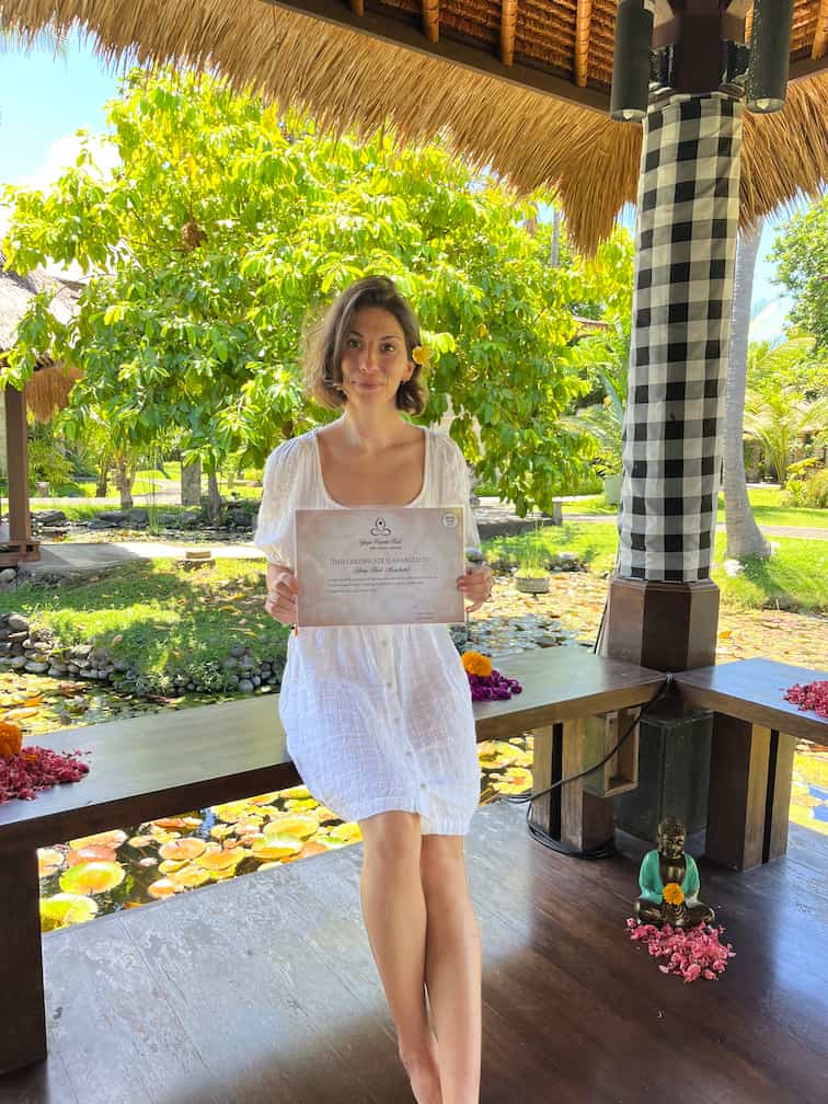 Comment as-tu vécu ton expérience ? Est-ce que tu pourrais nous raconter ce que tu as découvert sur toi et sur le yoga ? Comment ton corps a-t-il évolué tout au long de cette formation ? En rentrant, as-tu poursuivi en mettant en place une routine quotidienne ?