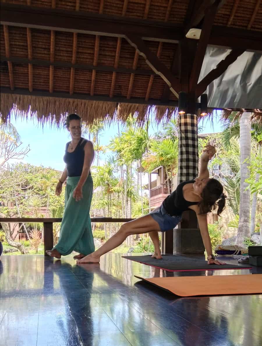 Tout d’abord, le fait d’être baigné dans un endroit où le yoga est partout fait une grande différence. Durant un mois, je vivais pleinement yoga, du matin au soir. Hors du temps et entourée par des personnes exceptionnelles, j’ai appris tellement de chose sur le yoga. Que ce soit sur l’histoire, les styles de yoga, la respiration (pranayama), la physiologie, l’anatomie, la méditation…